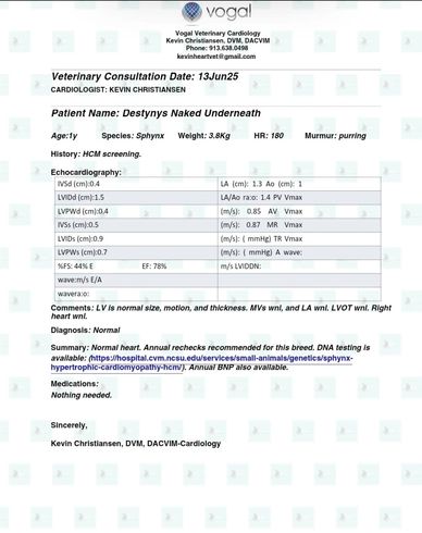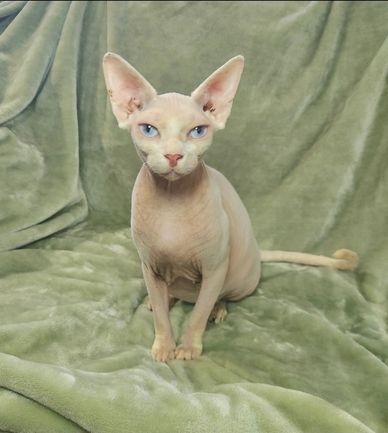 Tini is the newest addition to our outcross program from our friends at Destyny's sphynx. She was born 7/5/25 and when she is a year we will finish her health testing and hopefully add her to out program. She is a TICA registered sphynx.